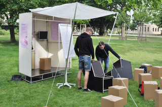 Gemeinsam mit Iris Dzudzek und einer Studierendengruppe